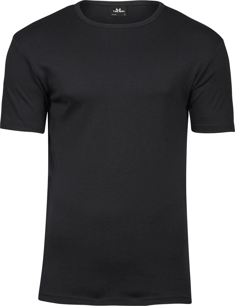 Приталенный крой, узкий круглый вырез горловины, двойные швы, высококачественный интерлок из длинноволокнистого хлопка, эластичный, обработка силиконом для очень гладкого прикосновения, стирка при 60°